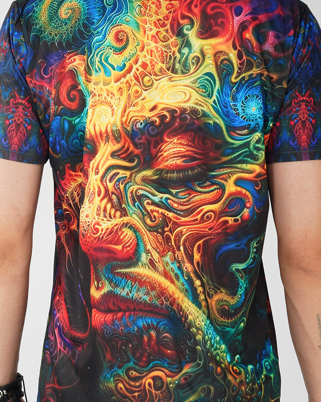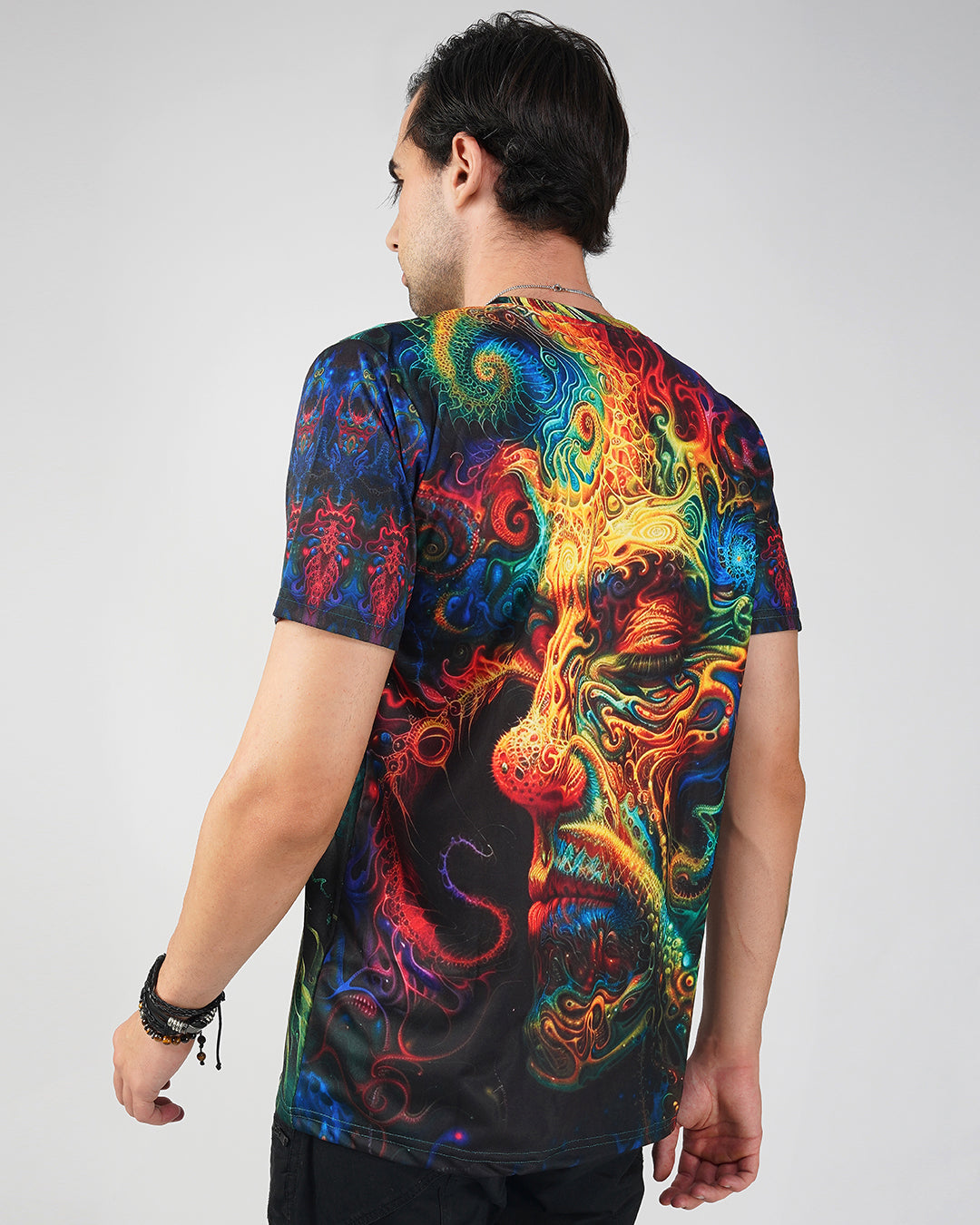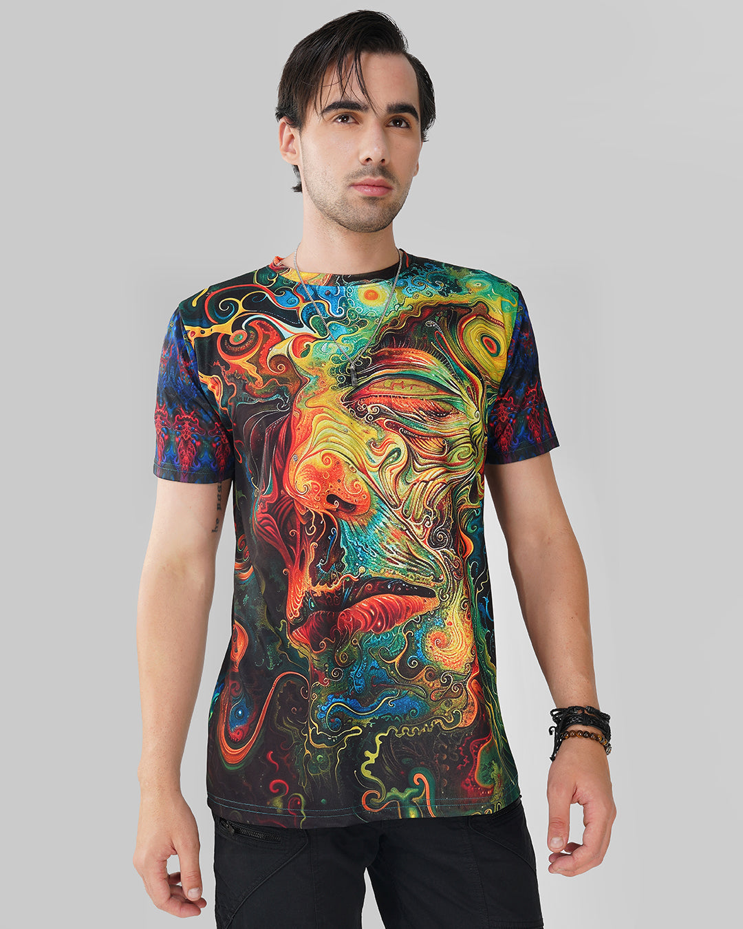 חולצת טי מודפסת דיגיטלית בעיצוב ייחודי, עם מפתח צוואר עגול וגזרה רגילה.
