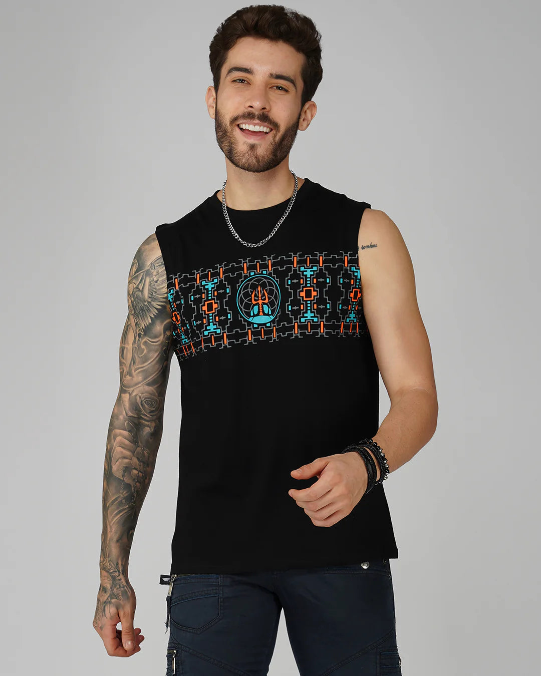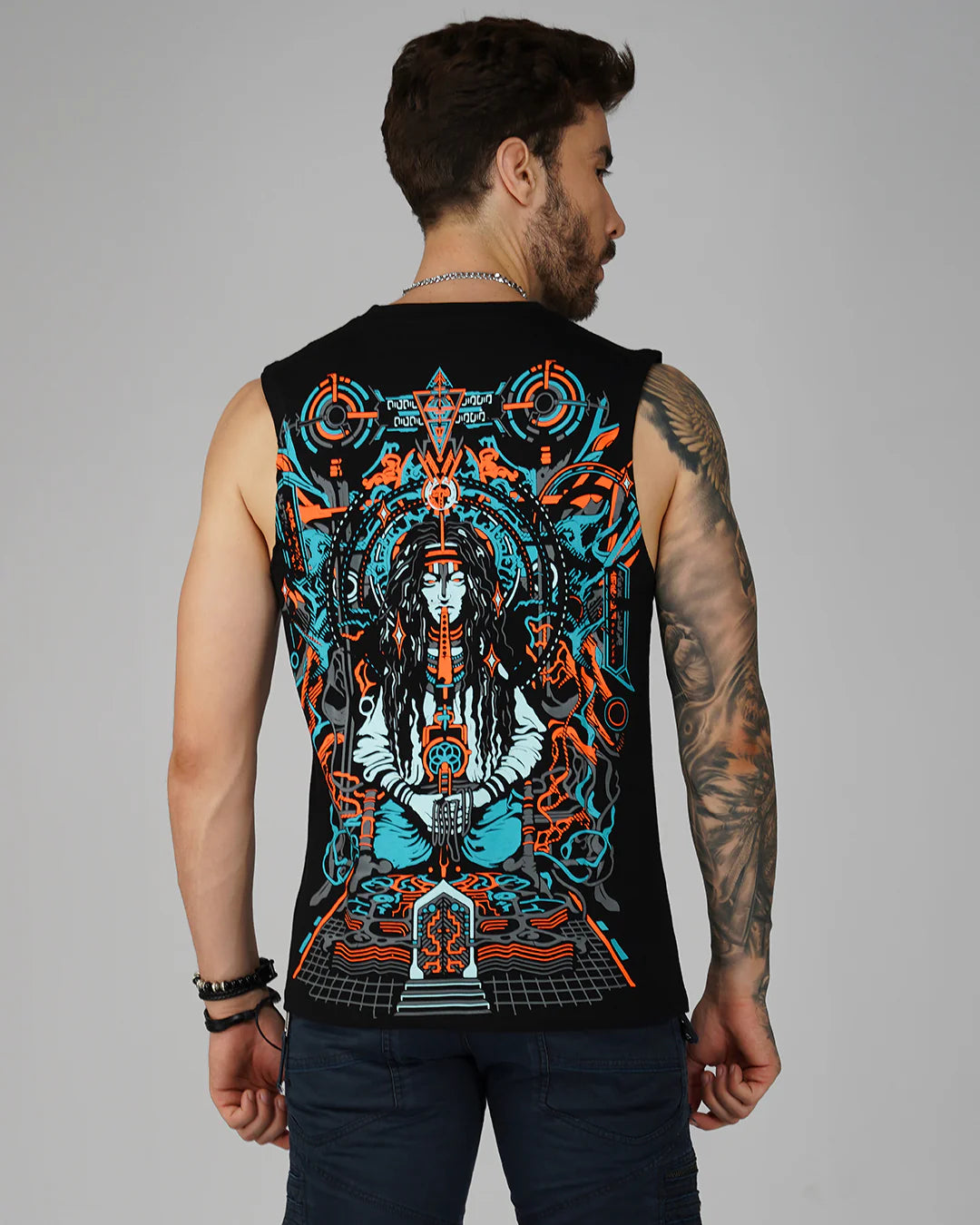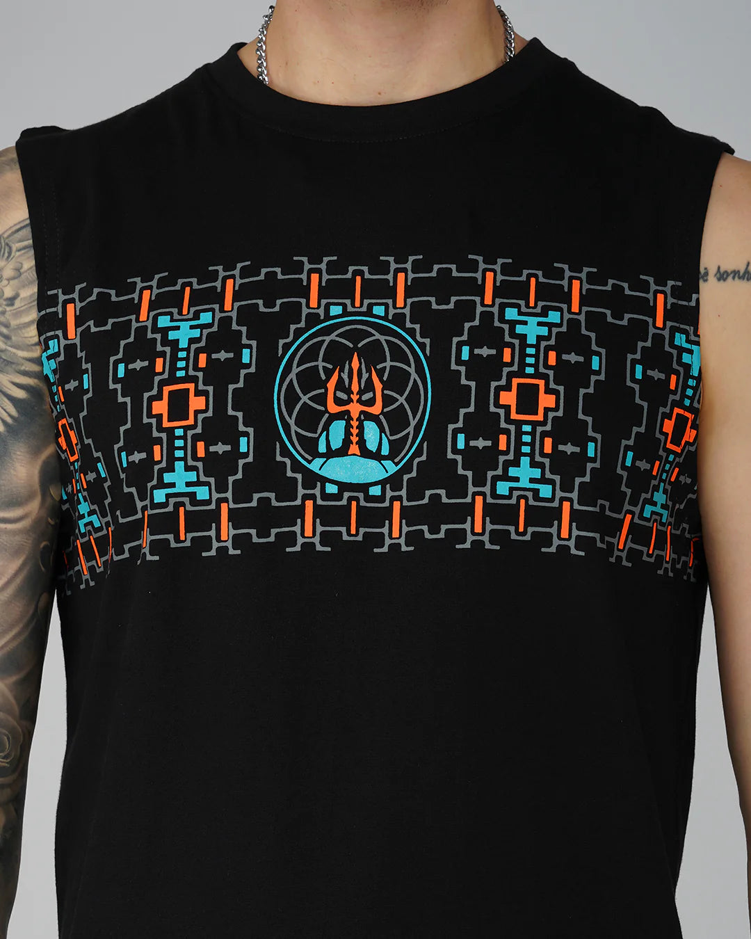 עשויה מ־100% כותנה פרימיום, חולצת ה־ גופיה נועדה לאנשים שחיים בקול רם ומתלבשים אפילו בקול רם יותר. עם הדפסי משי בעבודת יד מלפנים ומאחור – זו לא סתם חולצה, אלא יצירת אמנות לבישה.